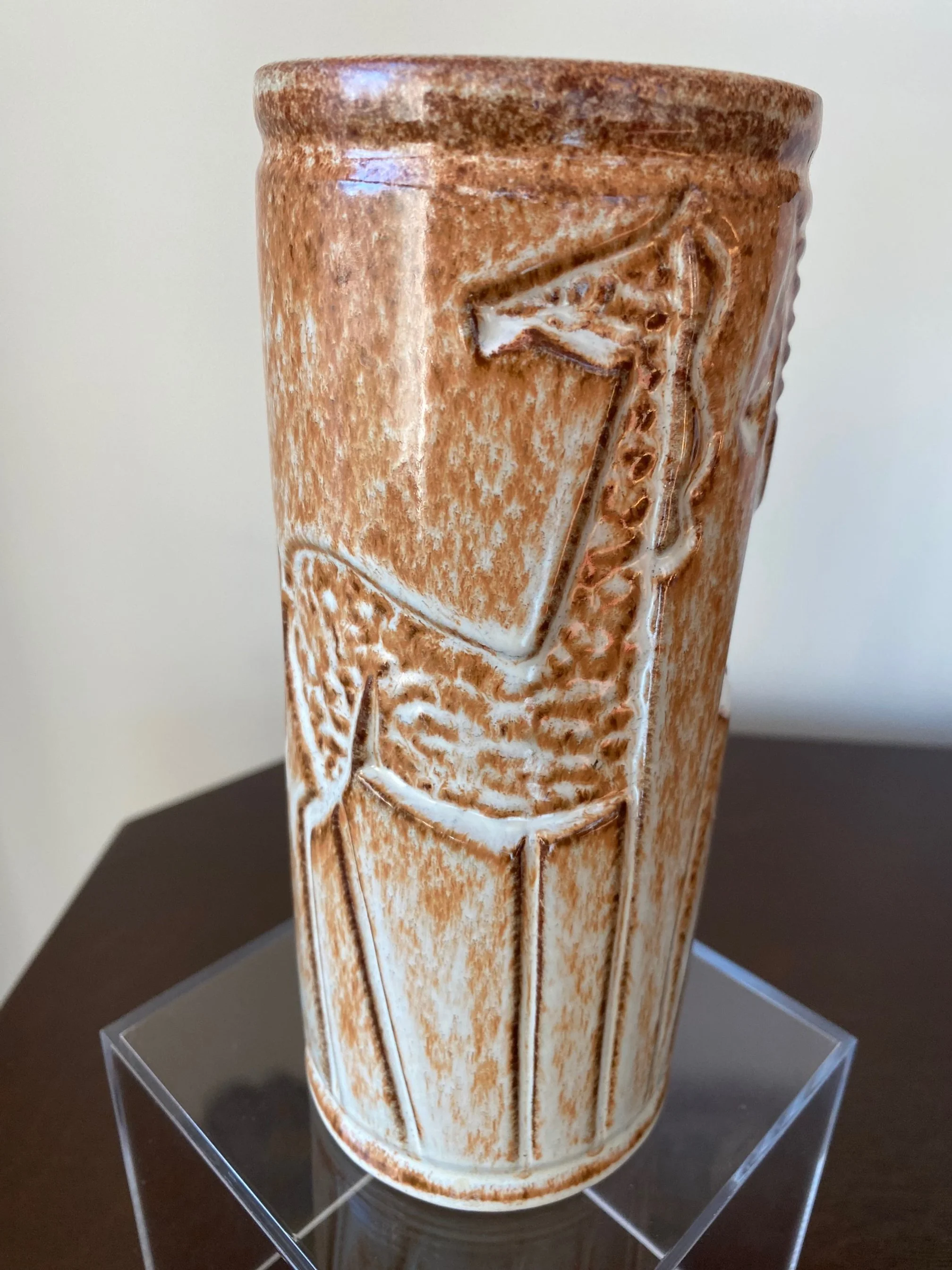 Otto Mulders modern pottery vase, designed for Arnold Wiigs Fabrikker)Pottery (AFW)studio in Halden, Norway in the 1960s. Signed on the bottom, OTTO MULDERS, AWF. Height 7.87 inches; Width 3.14 inches. Price: $240