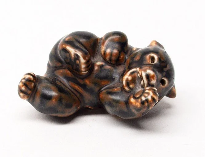 Knud Kyhn bear cub in a brown Sung glaze. Kyhd designed the bear in the 1940s for Royal Copenhagen. Artist Knud Kyhn Year 1940s Maker Royal Copenhagen, original production Material Stoneware Condition Very good vintage condition without any chips or cracks Size Length: 3.5 inches Width: 2.4 inches Height: 2.4 inches Marked KK (Knud Kyhn), Denmark, 21432. Price: $88