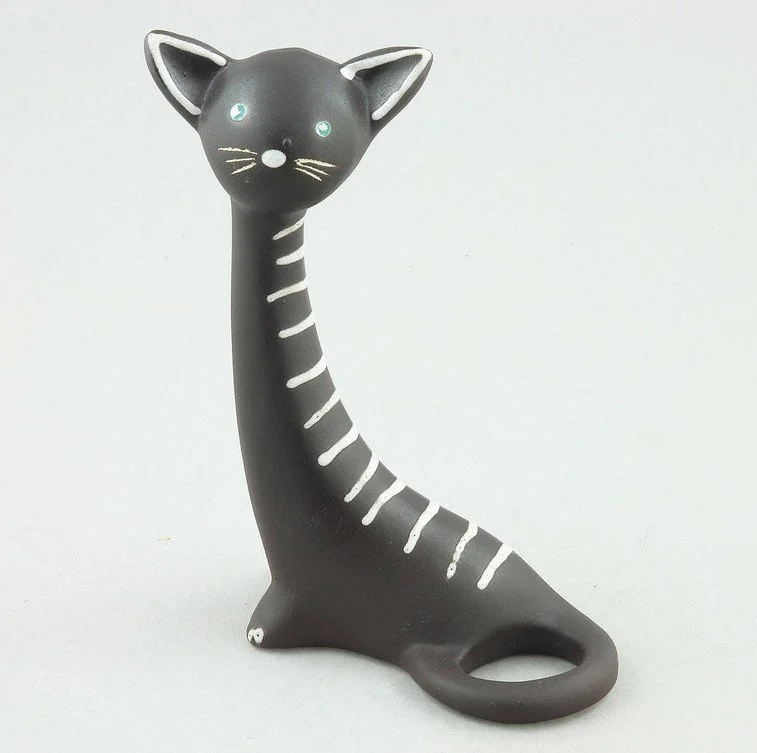 Modern cat in a hand decorated brown/white color. The cat was crafted in the 1950s at the Arnold Wiigs Fabrikker (AWF). A mid-century Norwegian art piece. Name Cat; Year 1950s; Maker Arnold Wiigs Fabrikker (AWF), original production. Material Stoneware; Size: Height 6.7 inches, Width 4.7 inches, Depth: 2.8 inches. Price: $110