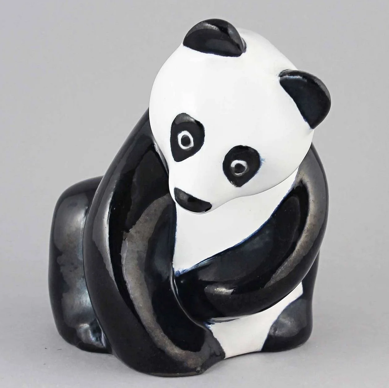 Mari Simmulson hand decorated panda. Crafted in the 1960s for the Upsala-Ekeby factory. Maker: Upsala-Ekeby, original production; Size: Height 5.1 in, Width 3.9 in, Depth 5.5 in; Marked: Upsala-Ekeby, MS (Mari Simmulson). Price: $190